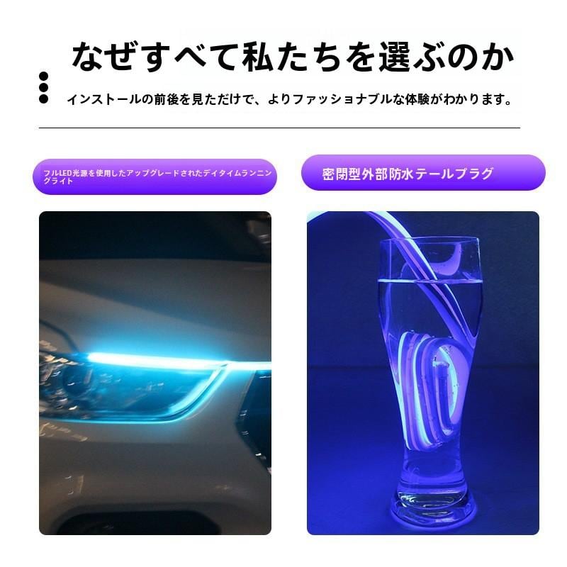 デイタイムランニングライト LED デイタイムランニングライト車の修正と装飾ユニバーサルソフトライトストリップ通気性抜群の超高輝度ライトガイドストリップ
