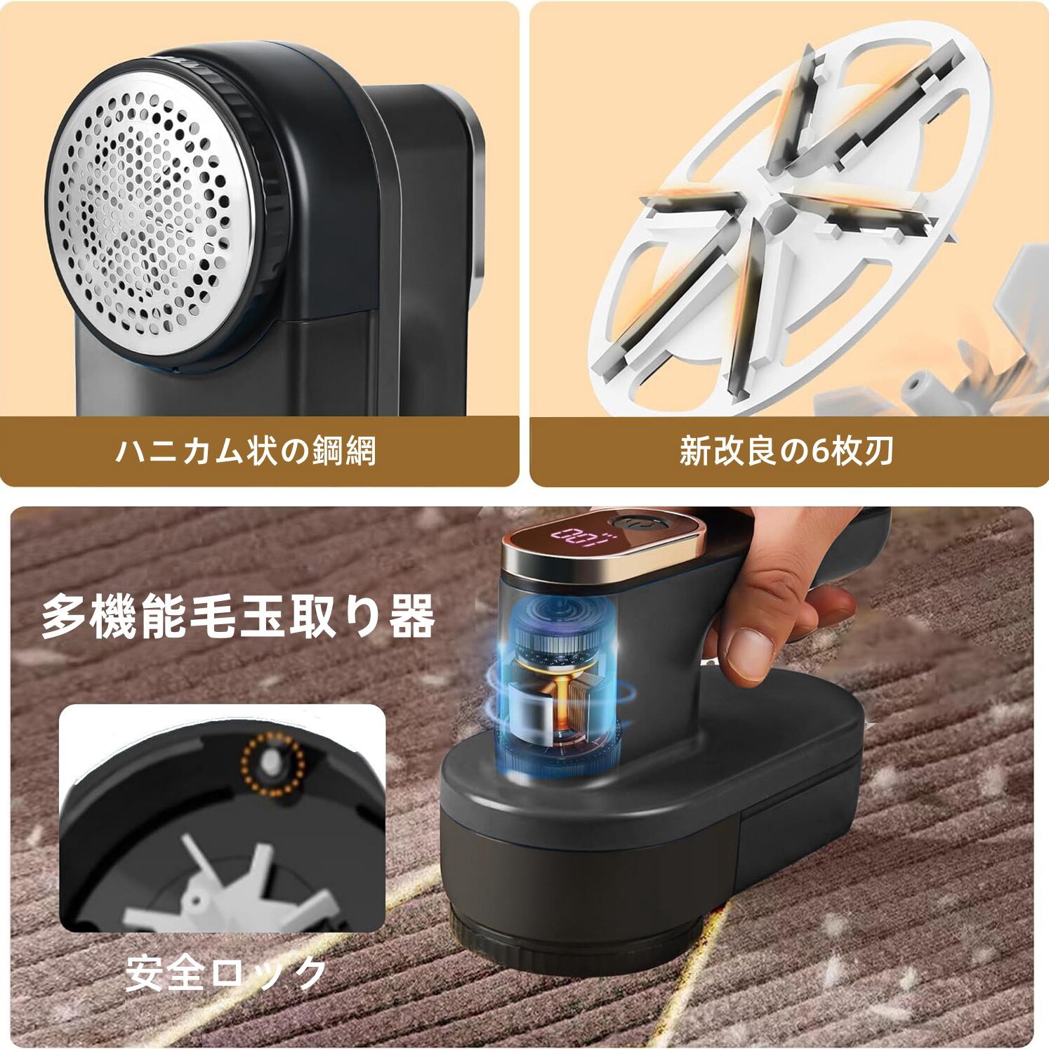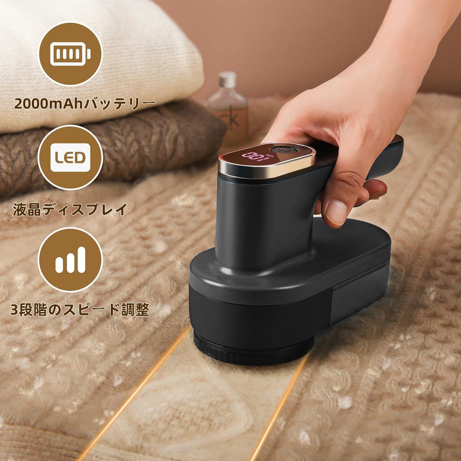 59.【 毛玉取り器 】クイックチャージ式 3段階のスピード調整 強力6枚刃 デジタル表示 大容量 ファブリック 毛玉取り機 家庭用 毛玉除去器 ブラック